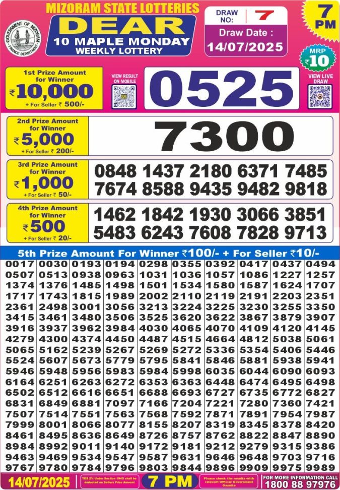 Dear 10 7 PM Result Today [July 14, 2025] | Rajya Lottery Sambad Update July 14, 2025 Leave a Comment on Dear 10 7 PM Result Today [July 14, 2025] | Rajya Lottery Sambad Update