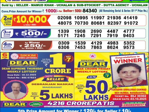 December 17, 2025  Leave a Comment on Lottery Sambad Result 1 PM Today [December 17, 2025] | Dear Lottery Daily Draw