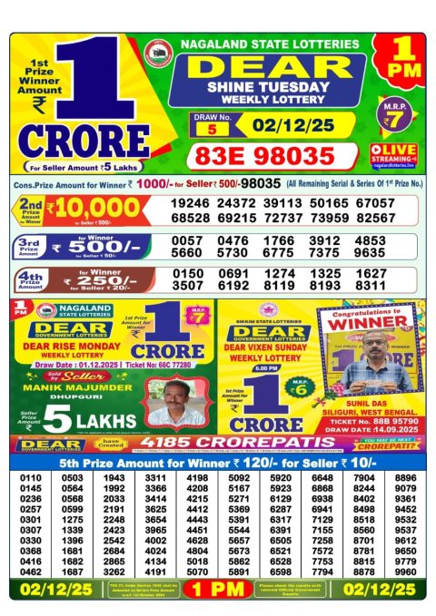 Lottery Sambad Result 1 PM Today [December 2, 2025] | Dear Lottery Daily Draw
