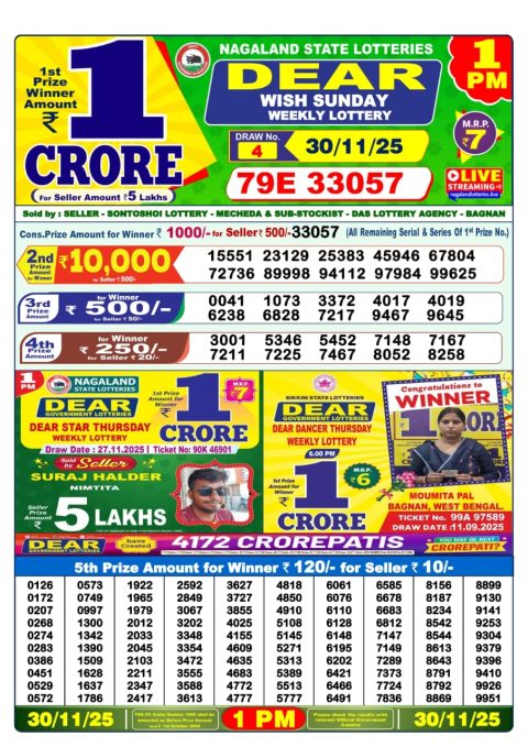 Lottery Sambad Result 1 PM Today [November 30, 2025] | Dear Lottery Daily Draw
