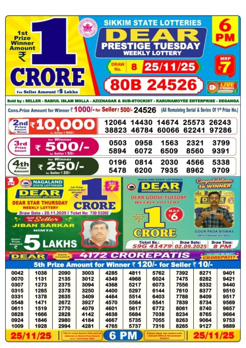 Dear Lottery Sambad 6 PM Result [November 25, 2025] | Latest 6pm Lottery Live
