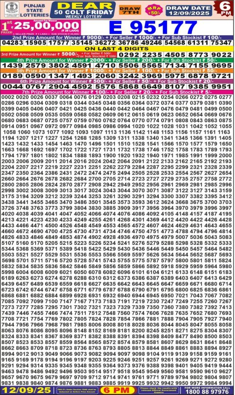 Punjab State Dear 50 Lottert 6 PM Result [September 12, 2025] | Official Outcome