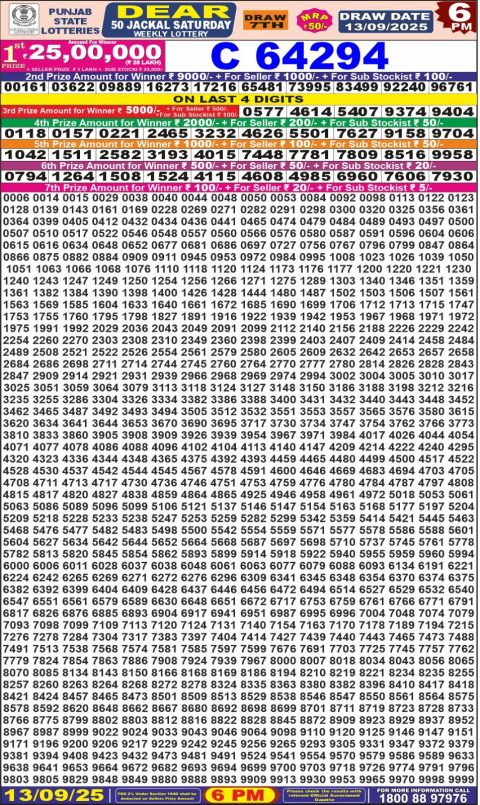 Punjab State Dear 50  Lottert 6 PM Result [September 13, 2025] | Official Outcome