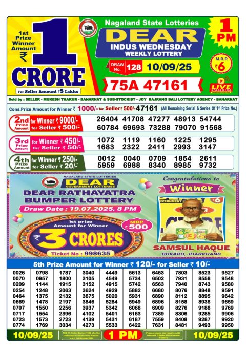Dear 10 7 PM Result Today [September 10, 2025] | Rajya Lottery Sambad Update