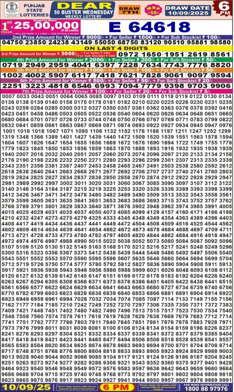 Punjab State Dear 50 Lottert 6 PM Result [September 10, 2025] | Official Outcome