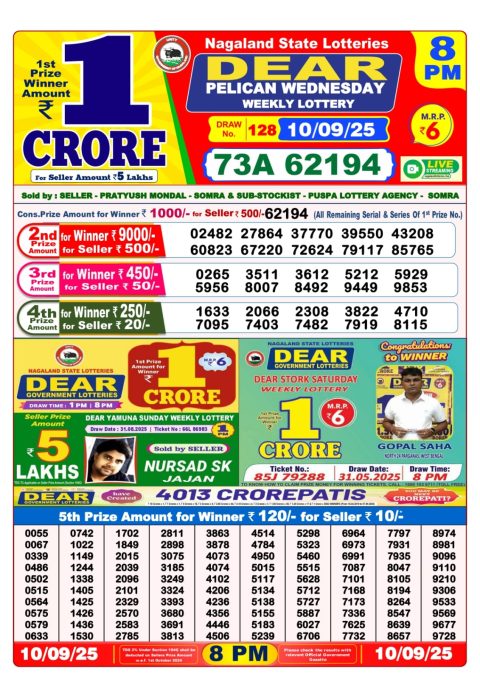 Dear Lottery Sambad 6 PM Result [September 10, 2025] | Latest 6pm Lottery Updates