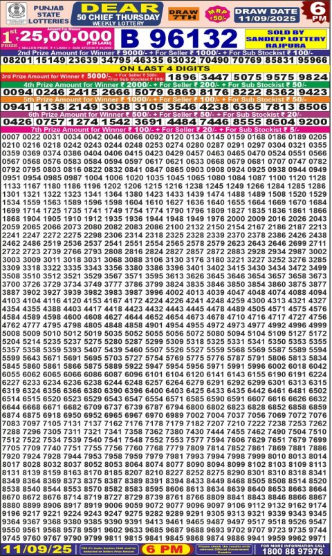 Punjab State Dear 50 Lottert 6 PM Result [September 11, 2025] | Official Outcome