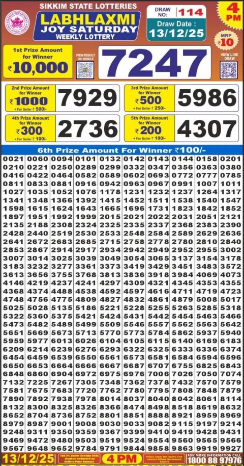 2025-12-19 Labh Laxmi 4 PM Result Today [December 19, 2025] | Official Lottery Result  2025-12-19 Lottery Sambad Result 1 PM Today [December 19, 2025] | Dear Lottery Daily Draw  2025-12-18 Dear Lottery Result 8 PM [December 18, 2025] | Lottery Sambad Night Result  2025-12-18 Punjab State Dear 50 Lottery 6 PM Result [December 18, 2025] | Official PDF  2025-12-18 Dear Lottery Sambad 6 PM Result [December 18, 2025] | Latest 6pm Lottery Live  2025-12-18 Labh Laxmi 4 PM Result Today [December 18, 2025] | Official Lottery Result  2025-12-18 Lottery Sambad Result 1 PM Today [December 18, 2025] | Dear Lottery Daily Draw  2025-12-17 Dear Lottery Result 8 PM [December 17, 2025] | Lottery Sambad Night Result  2025-12-17 Punjab State Dear 50 Lottery 6 PM Result [December 17, 2025] | Official PDF
