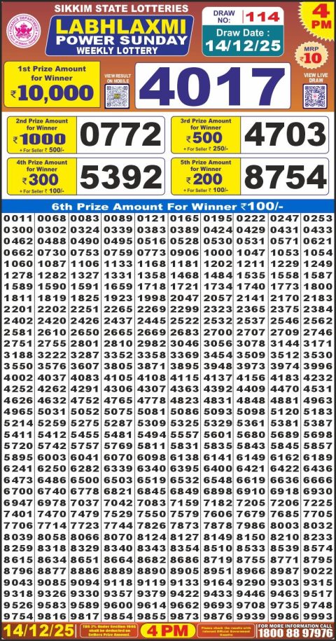 Labh Laxmi 4 PM Result Today [December 14, 2025] | Official Lottery Result