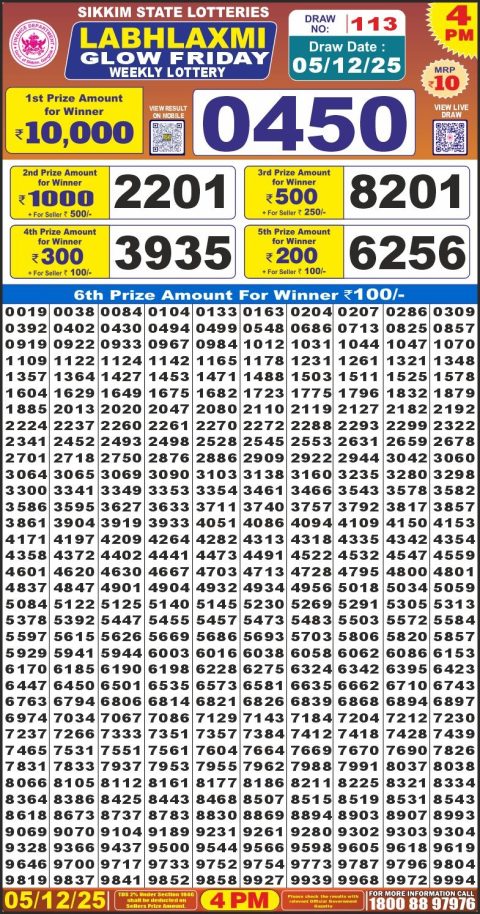 Labh Laxmi 4 PM Result Today [December 6, 2025] | Official Lottery Result