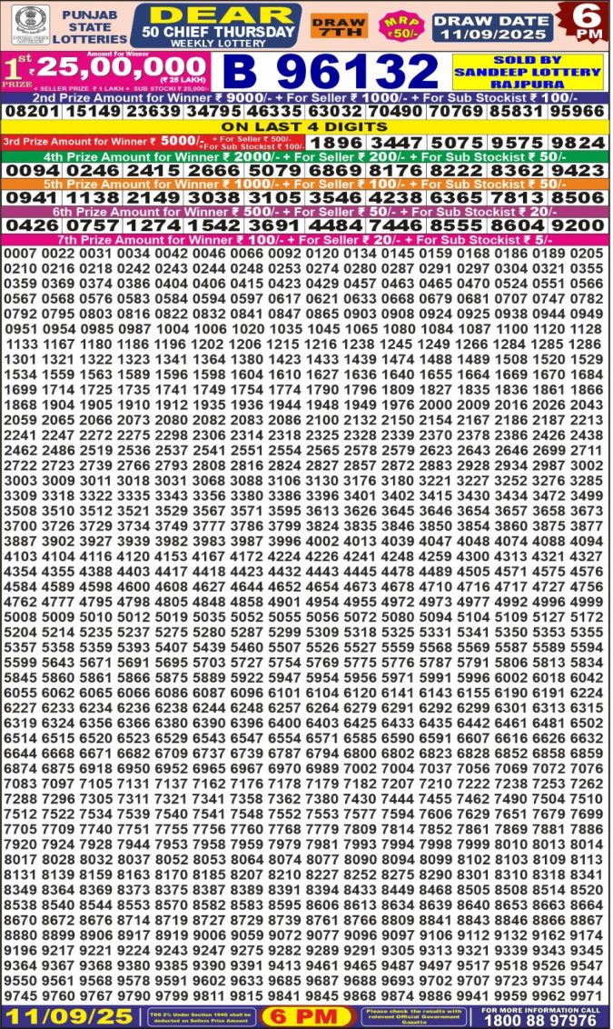 Punjab State Dear 50 Lottert 6 PM Result [September 11, 2025] | Official Outcome September 11, 2025 Leave a Comment on Punjab State Dear 50 Lottert 6 PM Result [September 11, 2025] | Official Outcome